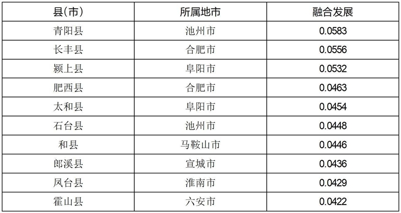 (4)安徽县域城乡融合成长阐发。按照生齿出生率、新增常住生齿、城乡居平易近人均可安排收入之等到一般公共预算财务收入占P比沉等目标的分析测评成果显示,青阳县、长丰县、颍上县、肥西县、太和县、石台县、和县、郎溪县、凤台县和霍山县等县(市)名列前茅。从地域分布来看,池州、合肥和阜阳均有2个县(市)进入全省前十位,马、宣城、淮南和六安各有1个县(市)进入全省前十位。