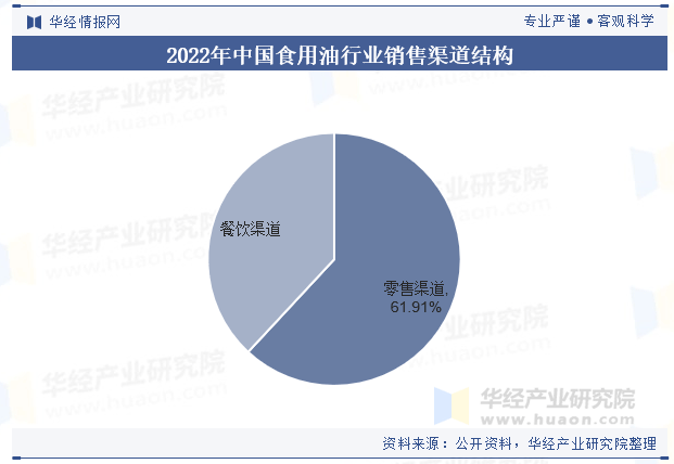 目前我国食用油次要以零售渠道为从,2022年零售渠道消费占比达61。91%,餐饮渠道占消费总量的38。09%。受疫情和封控办法等要素的影响,2022年我国餐饮行业表示承压,食用油需求显著下滑,消费量以至不及疫情初的2020年。