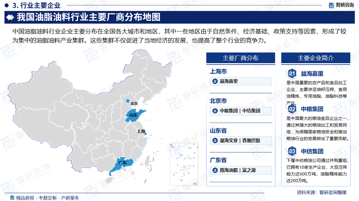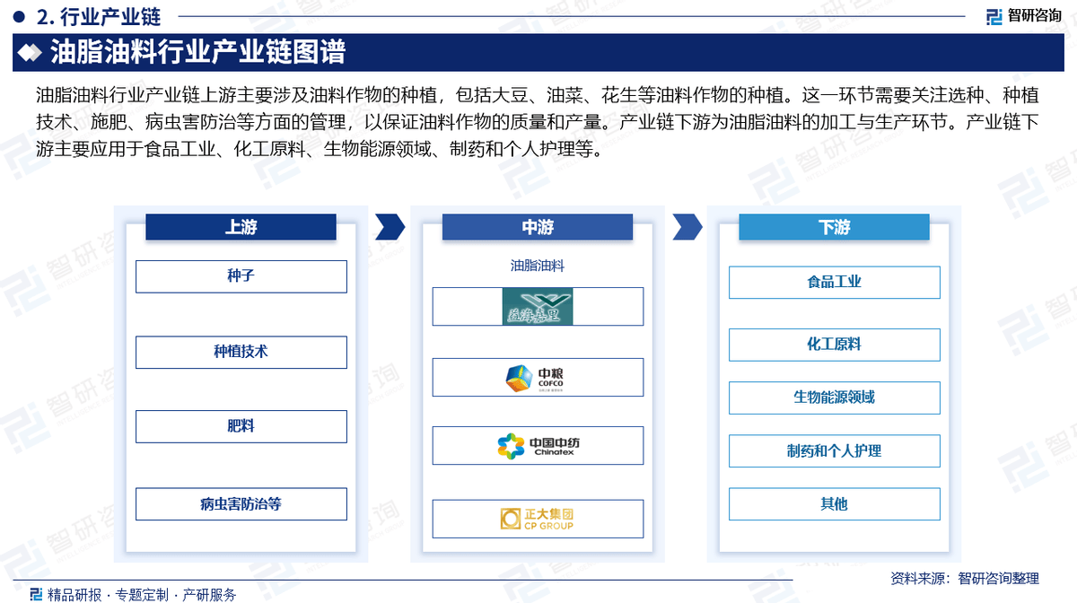 做为一个了中国油脂油料十余年成长的专业机构,智研征询但愿可以或许取所有努力于取油脂油料行业企业联袂共进,供给更多无效消息、专业征询取个性化定制的行业处理方案,为行业的成长尽绵薄之力。1:本演讲焦点数据更新至2023年12月(演讲中非上市企业受企业信批影响,相关财政目标或存正在必然的畅后性),演讲预测区间为2025-2031年。2:除一手调研消息和数据外,国度统计局、中国海关、行业协会、上市公司公开演讲(招股仿单、让渡仿单、年报、问询演讲等)等权势巨子数据源亦配合形成本演讲的数据来历。一手材料来历于研究团队对行业内沉点企业获取的一手消息数据,次要采访对象有企业高管、行业专家、手艺担任人、下旅客户、分销商、代办署理商、经销商以及上逛原料供应商等;二手材料来历次要包罗全球范畴相关行业旧事、公司年报、非盈利性组织、行业协会、机构及第三方数据库等。3:演讲焦点数据基于智研团队严酷的数据采集、筛选、加工、阐发系统以及自从测算模子,确保统计数据的精确靠得住。4:本演讲所采用的数据均来自合规渠道,阐发逻辑基于智研团队的专业理解,清晰精确地反映了阐发师的研究概念。智研征询做为中国财产征询范畴带领品牌,以“用消息驱动财产成长,为企业投资决策赋能”为品牌。公司融合定量阐发取定性阐发方式,用自从研发算法,连系行业交叉大数据,通过多元化阐发,挖掘定量数据背后根因,分解定性内容背后逻辑,客不雅实正在地阐述行业现状,为客户供给专业的行业阐发、市场研究、数据洞察、计谋征询及相关处理方案,帮力客户提拔认知程度、盈利能力和分析合作力。次要办事包含精操行研演讲、专项定制、月度专题、可研演讲、贸易打算书、财产规划等。供给周报/月报/季报/年报等按期演讲和定制数据,内容涵盖政策监测、企业动态、行业数据、产物价钱变化、投融资概览、市场机缘及风险阐发等。