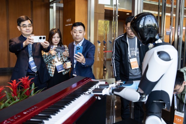 正在南京举行的2025财产科技立异取投资推进大会展现区,嘉宾正在拍摄机械人弹钢琴(2025年3月26日摄)。发(张梦 摄)