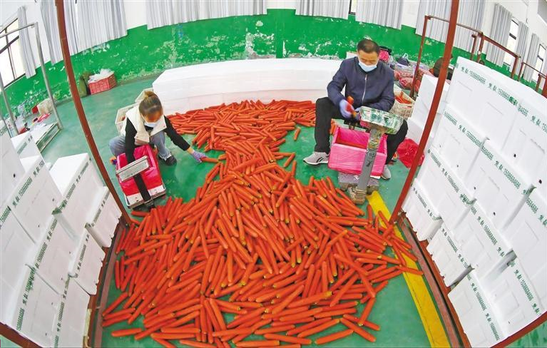 12月2日,大荔县荔盛红萝卜专业合做社厂区内,一派忙碌气象——工人忙着对红萝卜进行水洗、挑选、查验、拆箱等功课。合做社本年最初一批出口的26吨红萝卜正正在卸车。