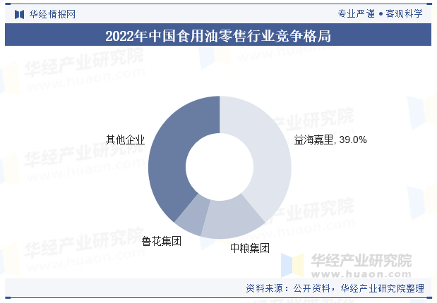 颠末多年成长,食用油零售市场中“一超多强”的合作款式曾经确立,合作款式相对不变。品牌出名度高,立脚产物特征的营销体例培育出高粘性的客户群体,龙头企业地位安定。2022年我国食用油零售企业CR3为61%,行业集中度较高,此中益海嘉里市场份额达到39%,位居榜首。