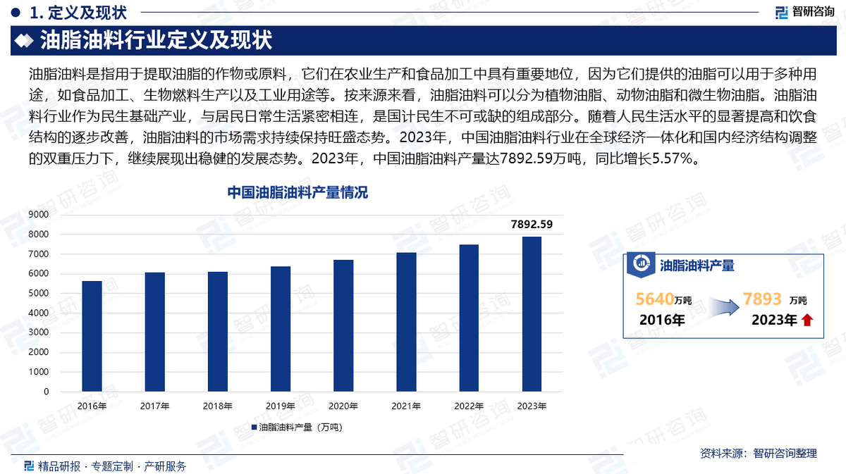 做为一个了中国油脂油料十余年成长的专业机构,智研征询但愿可以或许取所有努力于取油脂油料行业企业联袂共进,供给更多无效消息、专业征询取个性化定制的行业处理方案,为行业的成长尽绵薄之力。1:本演讲焦点数据更新至2023年12月(演讲中非上市企业受企业信批影响,相关财政目标或存正在必然的畅后性),演讲预测区间为2025-2031年。2:除一手调研消息和数据外,国度统计局、中国海关、行业协会、上市公司公开演讲(招股仿单、让渡仿单、年报、问询演讲等)等权势巨子数据源亦配合形成本演讲的数据来历。一手材料来历于研究团队对行业内沉点企业获取的一手消息数据,次要采访对象有企业高管、行业专家、手艺担任人、下旅客户、分销商、代办署理商、经销商以及上逛原料供应商等;二手材料来历次要包罗全球范畴相关行业旧事、公司年报、非盈利性组织、行业协会、机构及第三方数据库等。3:演讲焦点数据基于智研团队严酷的数据采集、筛选、加工、阐发系统以及自从测算模子,确保统计数据的精确靠得住。4:本演讲所采用的数据均来自合规渠道,阐发逻辑基于智研团队的专业理解,清晰精确地反映了阐发师的研究概念。智研征询做为中国财产征询范畴带领品牌,以“用消息驱动财产成长,为企业投资决策赋能”为品牌。公司融合定量阐发取定性阐发方式,用自从研发算法,连系行业交叉大数据,通过多元化阐发,挖掘定量数据背后根因,分解定性内容背后逻辑,客不雅实正在地阐述行业现状,为客户供给专业的行业阐发、市场研究、数据洞察、计谋征询及相关处理方案,帮力客户提拔认知程度、盈利能力和分析合作力。次要办事包含精操行研演讲、专项定制、月度专题、可研演讲、贸易打算书、财产规划等。供给周报/月报/季报/年报等按期演讲和定制数据,内容涵盖政策监测、企业动态、行业数据、产物价钱变化、投融资概览、市场机缘及风险阐发等。