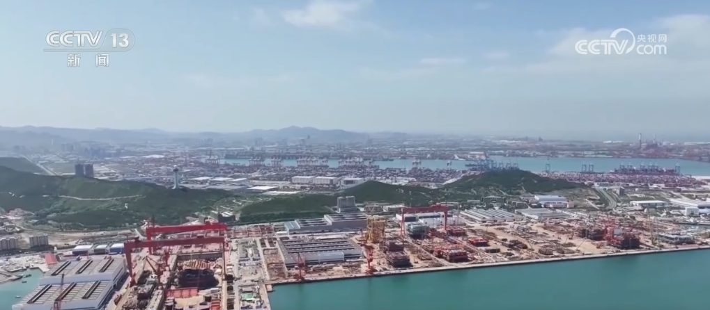 正在山东青岛西海岸,多艘大型船舶正正在同时建制。一艘21万吨级LNG液化气公用运输船刚出船厂!