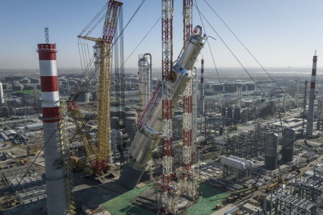 2月26日拍摄的华锦阿美精细化工及原料工程项目芳烃结合安拆抽余液塔吊拆施工现场(无人机照片)。记者 潘昱龙 摄正在大规模设备更新政策的带动下,一季度设备工器具购买投资同比增加19%,比客岁全年加速3。3个百分点,对全数投资增加贡献率达64。6%。推进平易近营经济成长的一系列政策落实落细,持续优化营商。平易近间投资由上年全年下降转为增加,一季度同比增加0。4%。